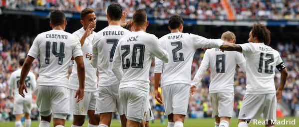 Real Madrid: Keylor Navas; Danilo, Varane, Sergio Ramos, Marcelo (Nacho, m. 33); Modric, Casemiro; Isco (Kovacic, m. 81), Kroos, Jesé (Lucas Vázquez, m. 63); y Cristiano. No utilizados: Casilla; Pepe, Cheryshev y James.