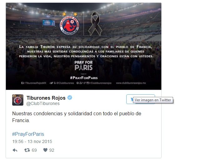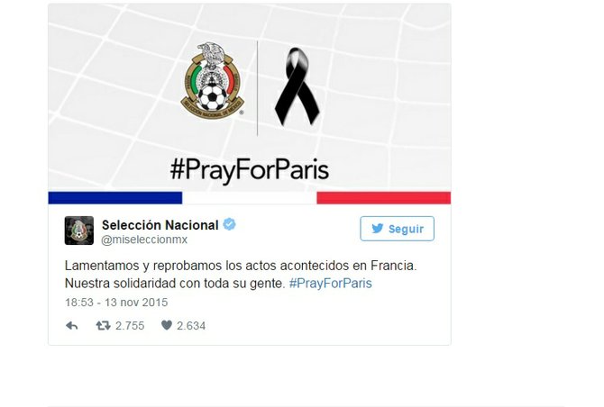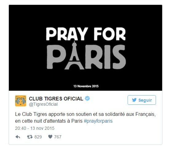Asimismo equipos como Veracruz, Tigres, Barcelona e incluso la Selección Mexicana, aprovecharon sus cuentas en redes sociales para manifestar su solidaridad con el pueblo francés.