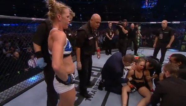 Holly Holm sorprendió al mundo este sábado en la noche, esto luego de haber conectado una brutal patada a la cabeza sobre Ronda Rousey, dejando así a la antigua campeona completamente inconsciente en el suelo.