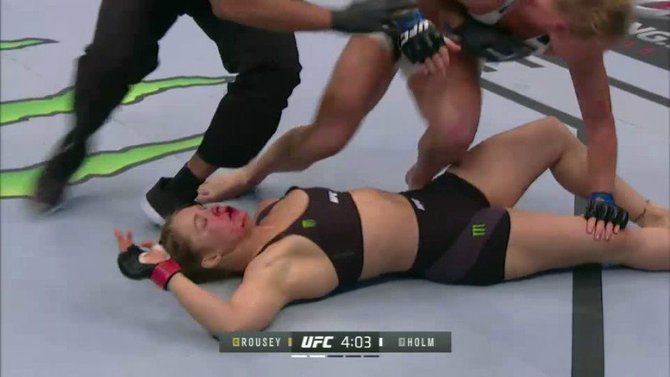 De hecho el daño fue tan grave que Ronda tuvo que ser llevada al hospital no solo por el nocaut, si no también porque su labio se partió en dos durante la pelea.