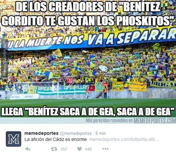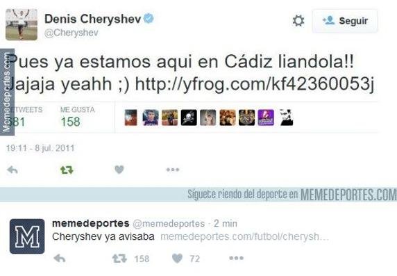 Las redes sociales, en particular la cuenta de Memedeportes , han hecho circular la noticia como la pólvora hasta el punto que los mismos aficionados del Cádiz, que seguían el partido desde la grada del Ramón de Carranza, han comenzado a cantar: “Cheryshev no puede jugar” y “Mira el Twitter, Benítez, mira el Twitter” en un intento de alertar de la irregular situación.