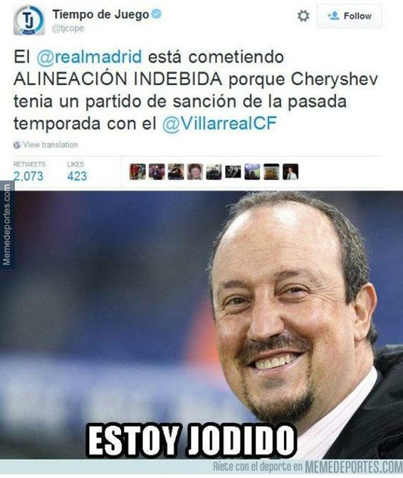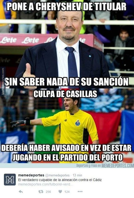 Las mismas redes sociales, también han empezado a hacer mofa de Benítez yCheryshev por un error que puede acarrearles la eliminación directa de la Copa.