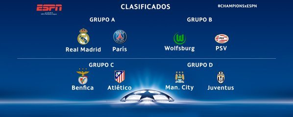 Igual que el Wolfsburgo el Atlético de Madrid avanzó como primero de su grupo. Se tomó la revancha en el estadio de La Luz de Lisboa. Superó al Benfica (1-2) y dejó atrás al resto de rivales.