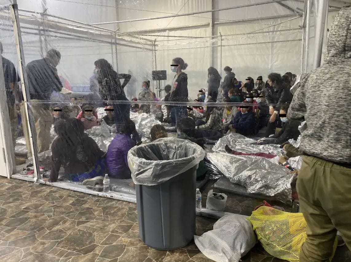 Henry Cuellar, representante demócrata por Texas, publicó fotos del interior de una carpa fronteriza temporal en Donna, Texas, donde los niños inmigrantes no acompañados están detenidos: evidenciando que estos recintos están abarrotados.