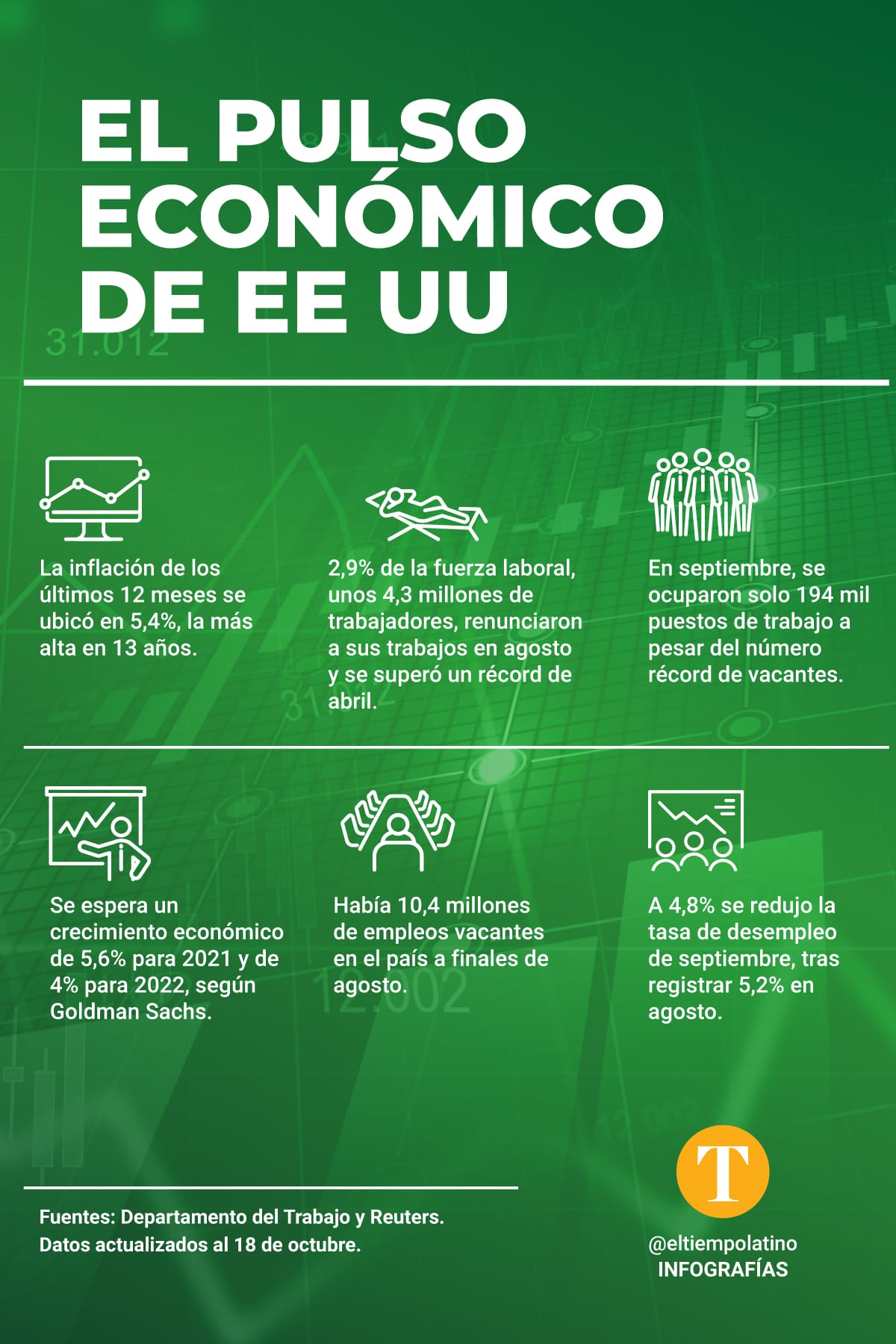 En septiembre los precios al consumidor (IPC) subieron 0,4% y registraron un acumulado interanual de 5,4%, un máximo de inflación no visto en 13 años. Los datos fueron actualizados el miércoles 13 de octubre, son los más recientes por parte del Departamento del Trabajo. En agosto el incremento había sido de 0,3%.