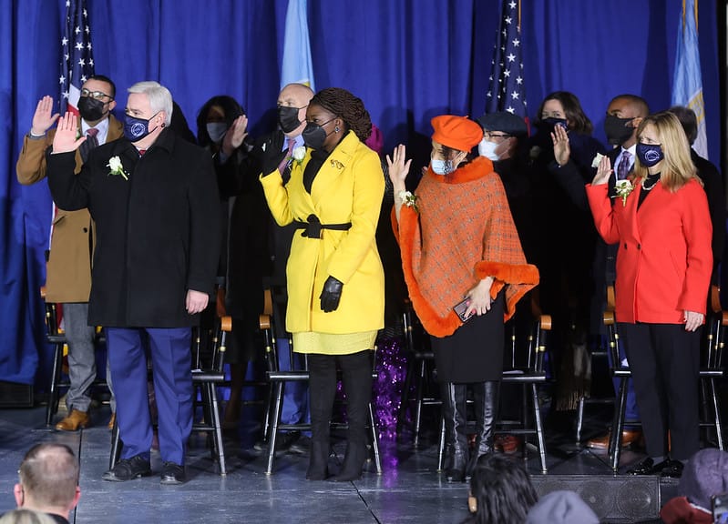 La ceremonia continuó con la juramentación de los concejales presidida por la alcaldesa Wu: “Tengo el honor de realizar el juramento de los nuevos concejales de Boston, les pido a mis colegas que se pongan de pie, por favor levanten su mano derecha. Vamos a realizar 3 juramentos diferentes, uno por el estado, otro por la ciudad y el último por Estados Unidos”. En ese momento, todos los nuevos concejales realizaron las juramentaciones, finalizaron con fuertes aplausos y abrazos entre todos.