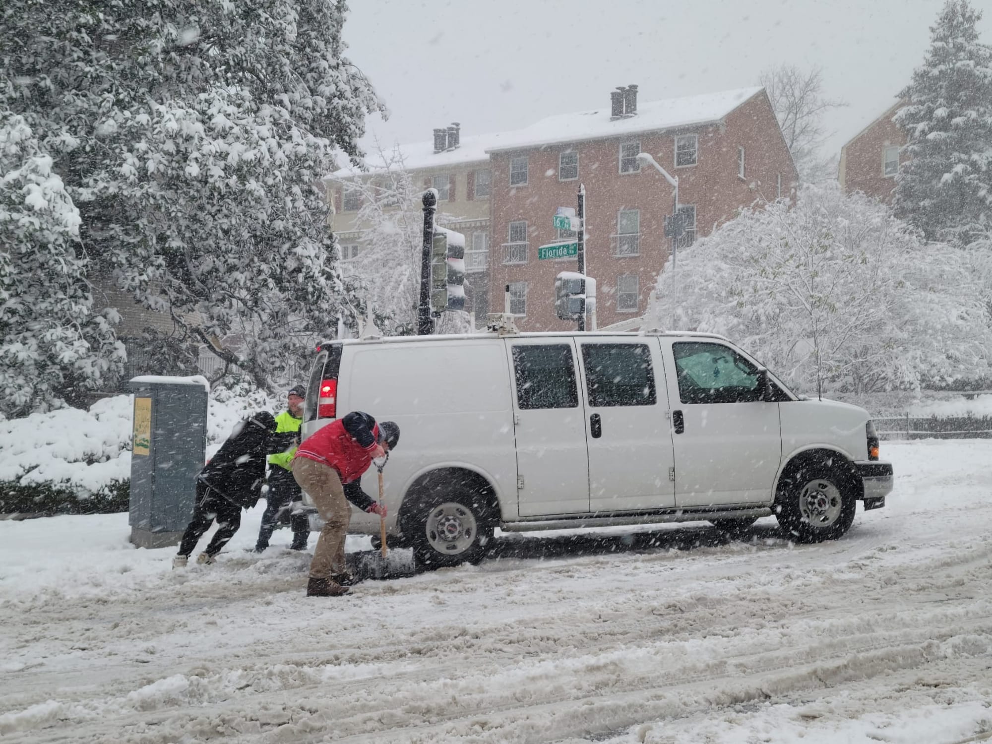 - La nieve debería disminuir a lo largo y al oeste de la Interestatal 95 alrededor de las 2 p.m. y en los suburbios del este a las 4 p.m.