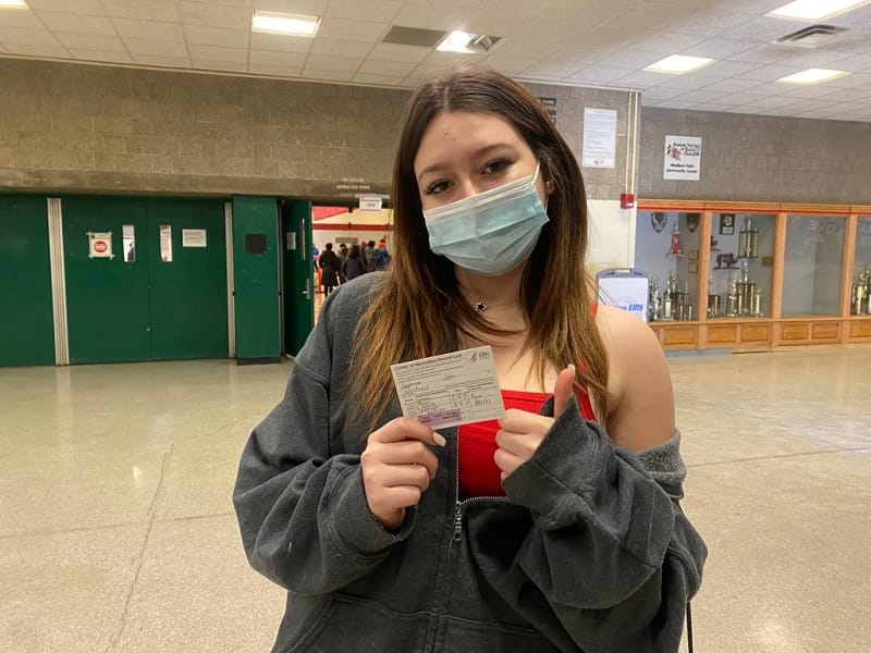 Desde las 10 de la mañana, la comunidad en general se hizo presente en la escuela secundaria para vacunarse y ponerse los refuerzos, los latinos no fueron la excepción y los niños de 12 a 15 años fueron los que asistieron en su mayoría. Nicole Iparraguirre de 15 años y Sofia Santana de 14, estuvieron allí para reforzar su inmunización, ambas coinciden que se vacunaron meses atrás y se pusieron el refuerzo por amor a sus “abuelitas”, para sentirse seguras ellas mismas, proteger a sus amigos y a la comunidad en general.