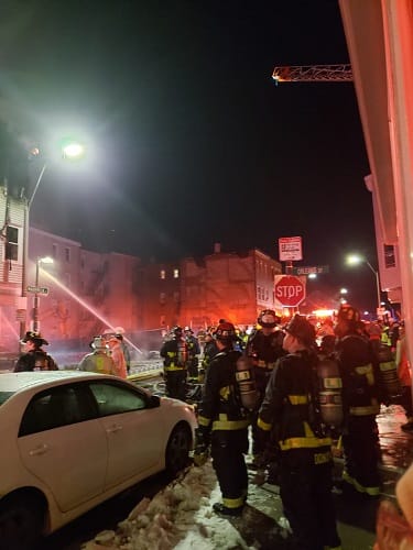 El Comisionado de Bomberos de Boston, John Dempsey dijo que se veía un gran incendio desde el edificio principal de bomberos. “Rápidamente se extendió al edificio de la izquierda y a la parte trasera… Hicimos una búsqueda primaria de inmediato, pero el fuego nos obligó a realizar operaciones defensivas con bastante rapidez”.