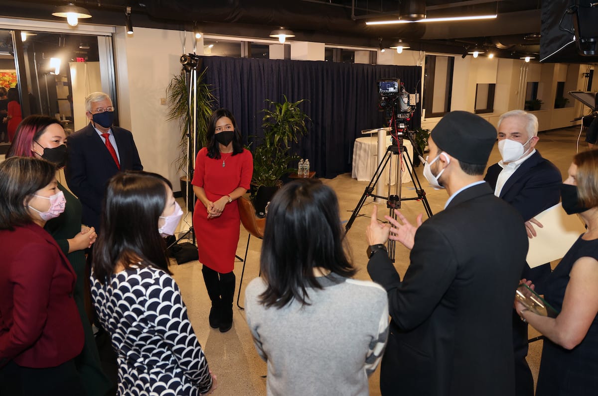 Durante la recepción, la alcaldesa Wu abordó sus objetivos para la próxima temporada y nombró a los homenajeados de este año. Otorgó el premio «We Are Boston Community Champion Award» de 2022 al Asian Community Emergency Relief Fund, compuesto por seis grupos locales. El fondo distribuyó más de medio millón de dólares a familias afectadas por la pandemia que no pudieron acceder a los beneficios públicos, todo mientras enfrentaban el racismo antiasiático.