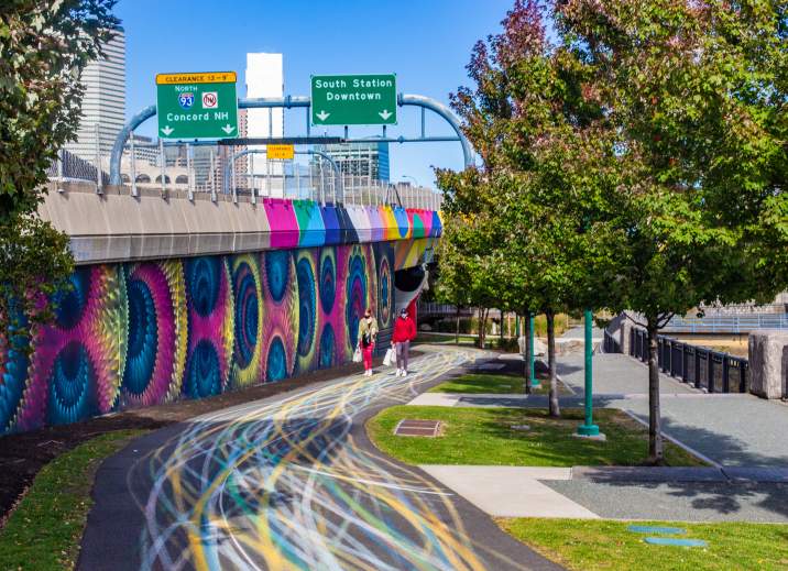 Underground at Ink Block es un parque urbano que ha transformado el paso subterráneo de una autopista en un espacio de atracción cultural con vívidos murales. Ubicado entre South End y South Boston, lo que convierte el sitio en un punto de encuentro para las comunidades.