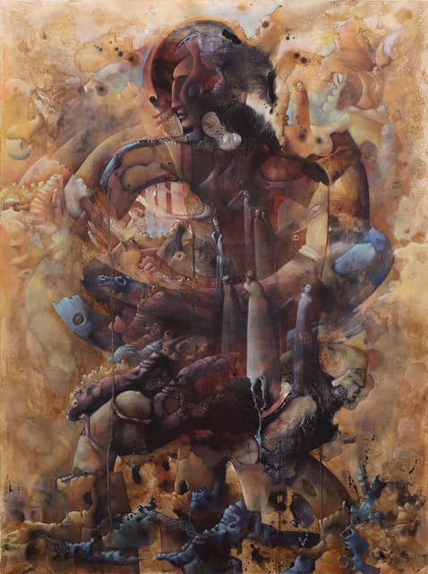 Con ese ritual artístico ha podido crear piezas como Anima Mundi, una de sus obras favoritas que forma parte de su serie Immigration. “Este cuadro representa la totalidad, una sola esencia. Es como si nosotros somos las gotas de agua que forman el mar. El cuadro, Anima Mundi, representa eso, el lama del mundo, la unión del todo”, explicó.