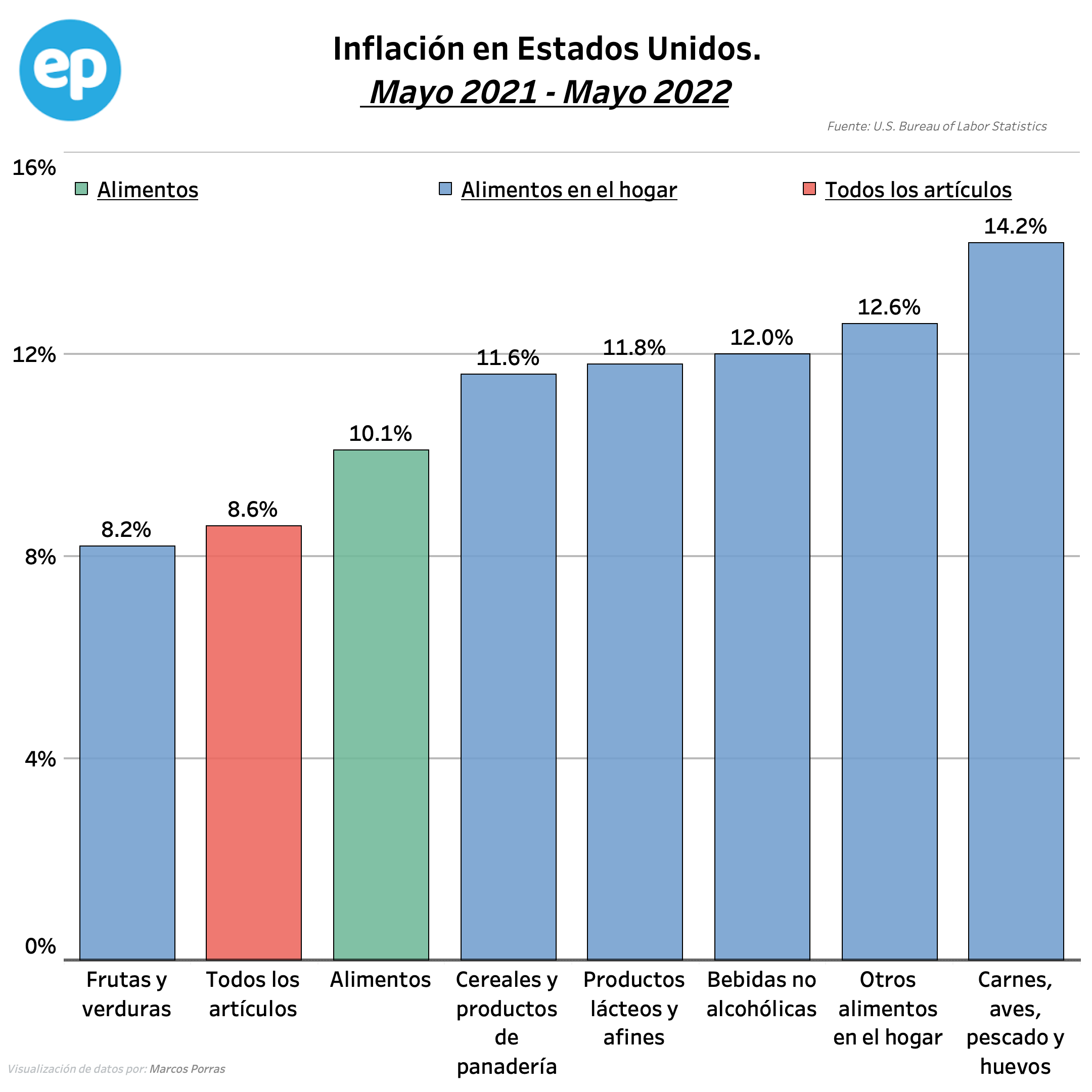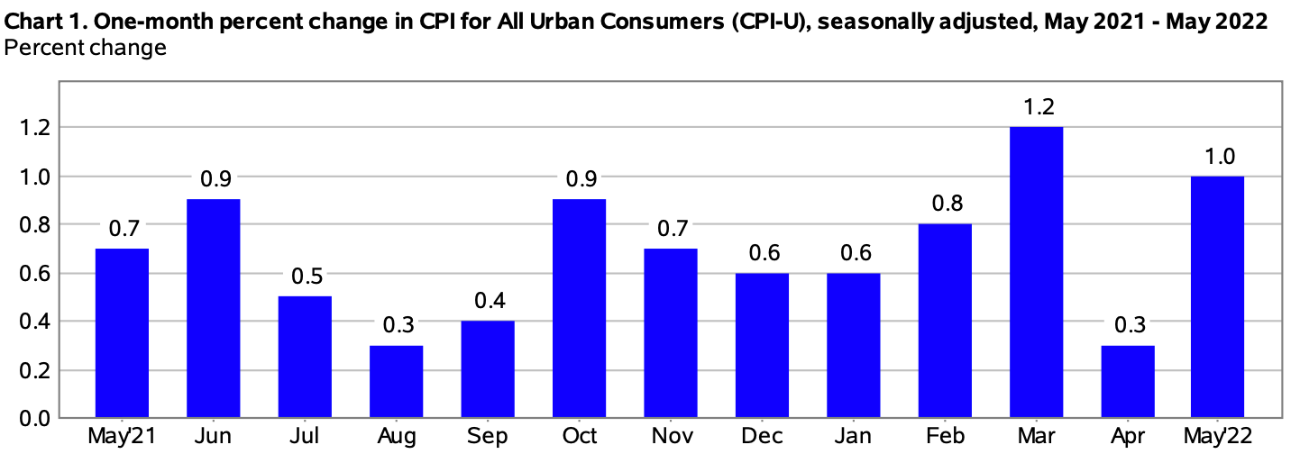 Como resultado de los crecientes costos asociados con la energía y los alimentos, la inflación al consumidor en los Estados Unidos alcanzó su nivel más alto en más de cuatro décadas en el mes de mayo. La Oficina de Estadísticas Laborales de EE.UU., publicó el pasado 10 de junio, el reporte del Índice de Precios al Consumidor para Todos los Consumidores Urbanos (CPI-U, por sus siglas en inglés) correspondiente al mes de mayo, informando el aumento de un 1,0 % en una base desestacionalizada después de subir 0,3 % en abril. En los últimos 12 meses, el índice de todos los artículos aumentó un 8,6 % antes del ajuste estacional, presentando la variación de los precios de todos los bienes y servicios de consumo, incluidos los alimentos.