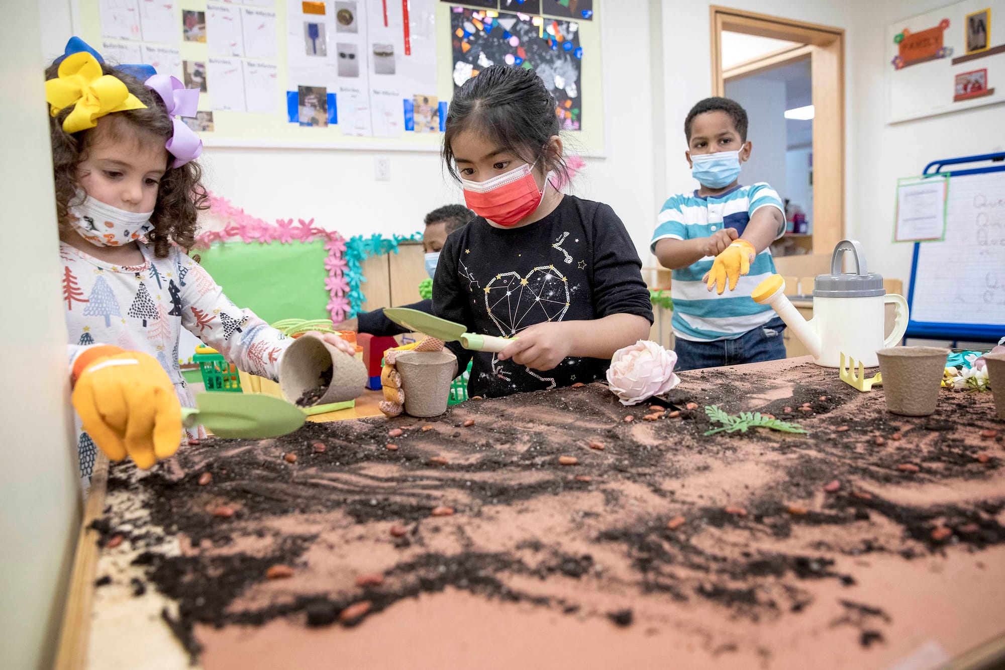 «Tuvimos que convertirnos en una pequeña guardería temporal», dijo Burton. «Había oficinas que utilizábamos donde teníamos que reservar espacio para los niños».