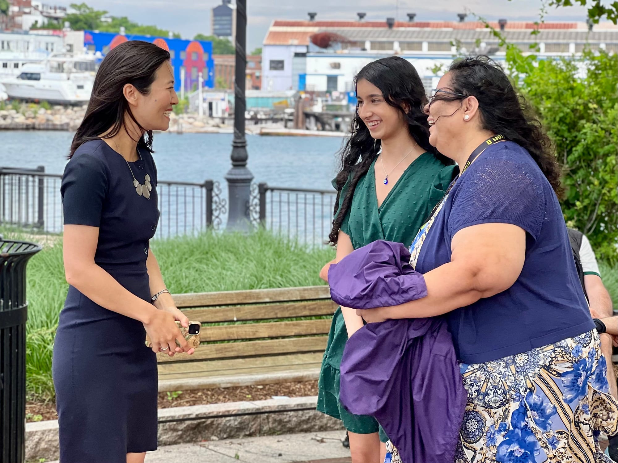 La senadora estatal Lydia Edwards estuvo presente mencionando la importancia para grupos de minoría. “Debemos de recordar nuestros antepasados. Este también fue un puerto para esclavos y donde muchos de ellos llegaron a Boston, con la esperanza de sobrevivir. Pensemos también en los inmigrantes, en las madres y en la clase trabajadora que lucharon y ahora tendrán espacios verdes gratuitos”, comentó.