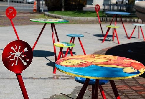 Este verano, un grupo de artistas, Max Pro, Aliyah Saldana-Oswald y Jasmine Valasquez con la líder del equipo Claudia Paraschiv y el trabajador metalúrgico Scott Lanes, se encargarán de restaurar las mesas. Esta vez están centrándose en el tema de los árboles.