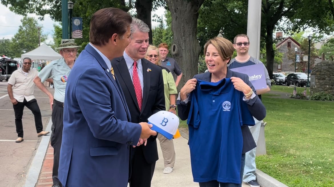 El Alcalde de Braintree como muestra de su adhesión a la candidatura de Healey le entregó la gorra, la camiseta y un pin de la ciudad. “Ahora usted es parte de Braintree”, manifestó Charles Kokoros, quien aseveró que su administración municipal trabajará junto a la Gobernación cuando ella -al referirse a Maura Healey- ocupe la silla principal de la Casa del Estado.