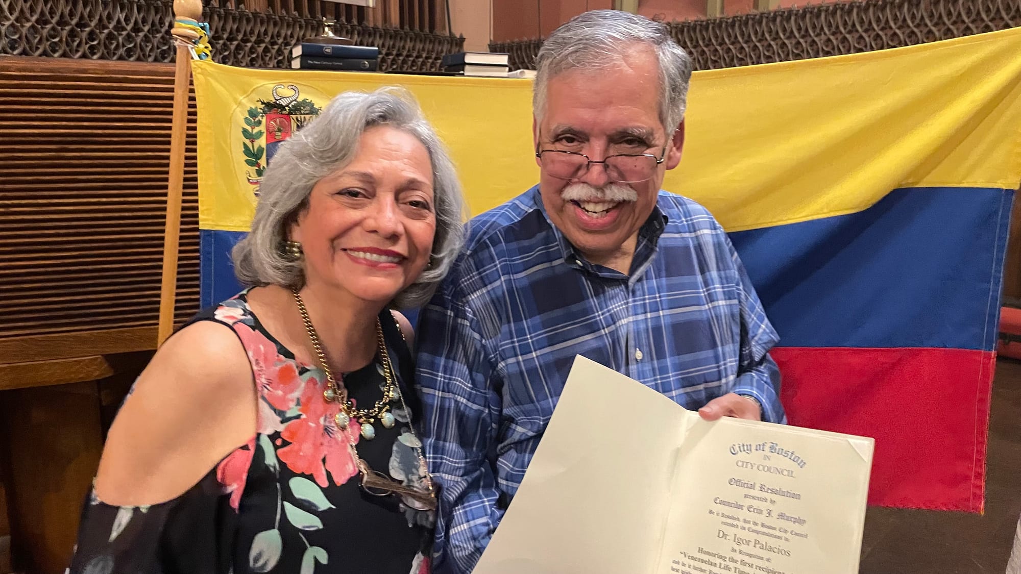 Por su parte, el Municipio de Boston le otorgó un certificado por sus logros profesionales al doctor Igor Palacios, cardiólogo venezolano cuya participación médica dentro del Mass General Hospital es de casi 50 años, quien ha estado involucrado en el desarrollo y ensayos clínicos de la mayoría de los dispositivos utilizados en cardiología intervencionista e introduciendo nuevas técnicas en el campo del cateterismo cardíaco. El doctor Palacios es el director Emérito de Cardiología Intervencionista del MGH y profesor de la escuela de Medicina de la Universidad de Harvard. Juan Aurelio López, Director de Investigación y Políticas del Ayuntamiento fue el encargado de presentar a Tom Mannion, de la oficina de la concejal Erin Murphy, quien le entregó el reconocimiento municipal, firmado y presentado el 21 de julio de 2022. “Estamos tan orgullosos del doctor Palacios, su reconocimiento quedará registrado en el libro permanente del Municipio”, expresó López.