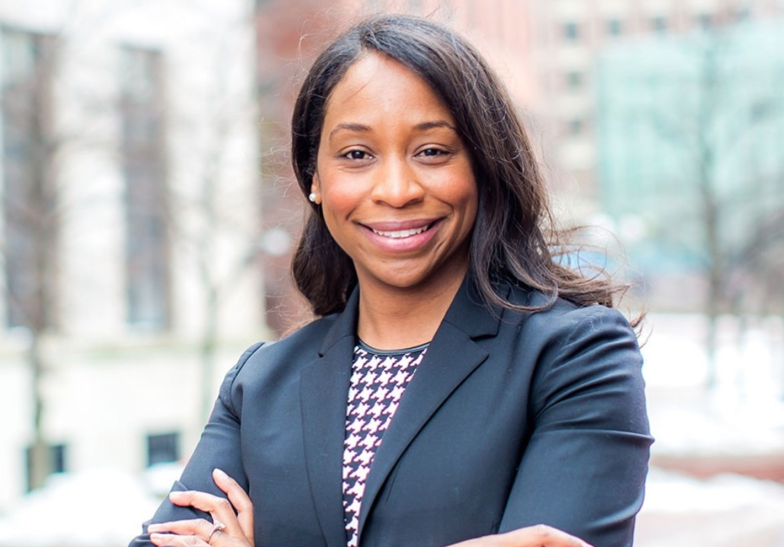 Tanisha Sullivan, presidenta de la sucursal de Boston de la NAACP. Sullivan creció en Brockton y se graduó en University of Virginia antes de obtener títulos en derecho y negocios de Boston College. Ha pasado gran parte de su carrera legal representando empresas de ciencias de la vida y realizando trabajos gratuitos en nombre de los trabajadores y las pequeñas empresas.