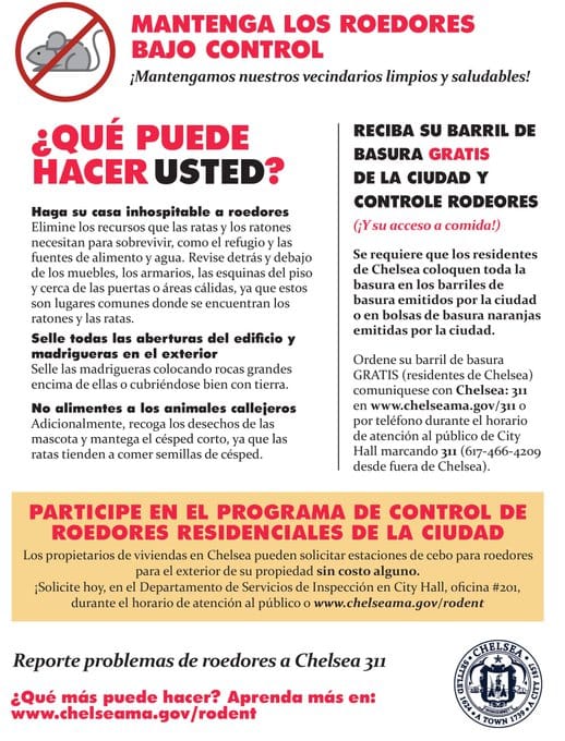 El gobierno de Chelsea está implementando medidas de control de roedores, mediante una campaña informativa que indica como mantener los vecindarios limpios y saludables realizando una serie de recomendaciones que puedes hacer en tu hogar para mantenerlo libre de estas plagas.