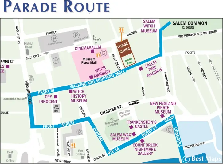 El evento se desarrollara en las siguientes calles: Congress Street, Derby Street, Central Street, Front Street, Washington Street, Essex Street Pedestrian Mall, Washington Square West y Salem Common.