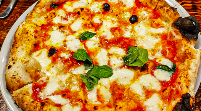 Zeneli sirve pizzas auténticas al estilo napolitano, cocinados a la leña para obtener una corteza fina con salsa de tomate fresca y queso mozzarella casero.