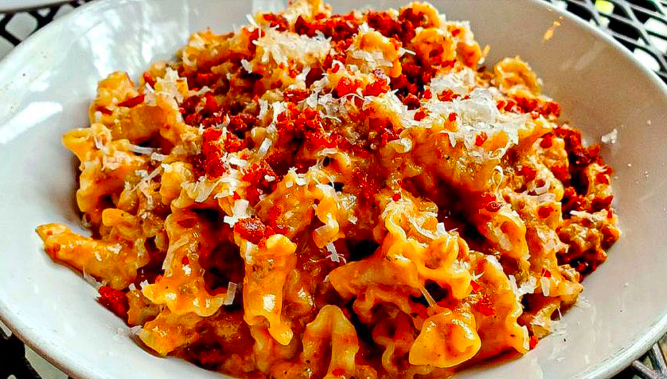 Lo que dicen los Yelpers: “Todo, y quiero decir todo, lo que he probado aquí hasta ahora es delicioso. Mi favorita tiene que ser la campanelle… un maravilloso nivel de dimensión. La pizza también es increíble en la cima del mundo”. —Carlota C.
