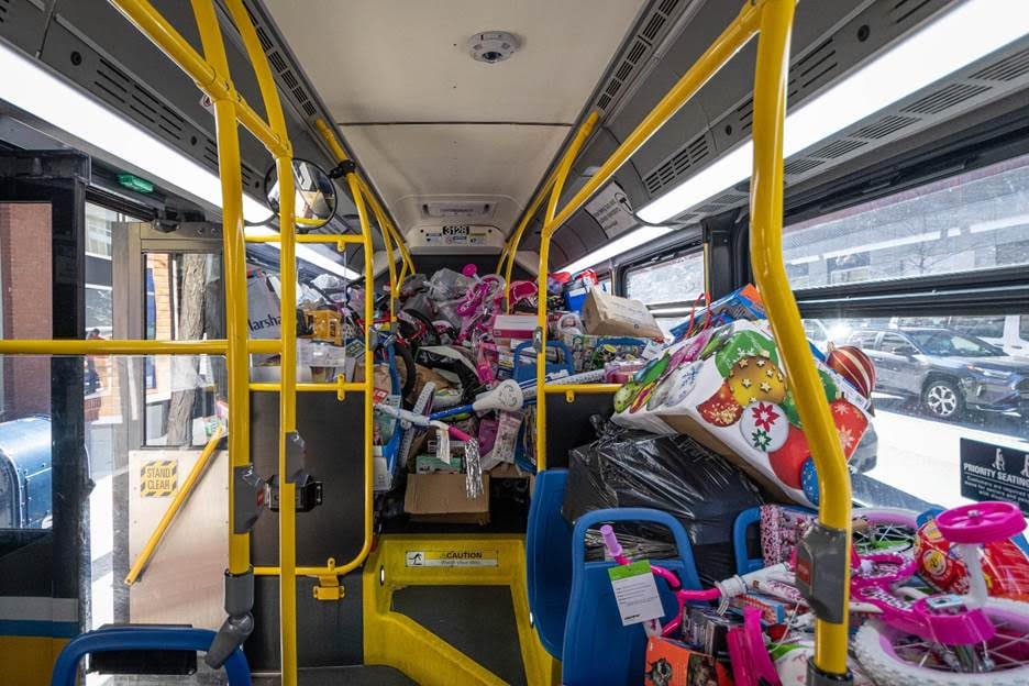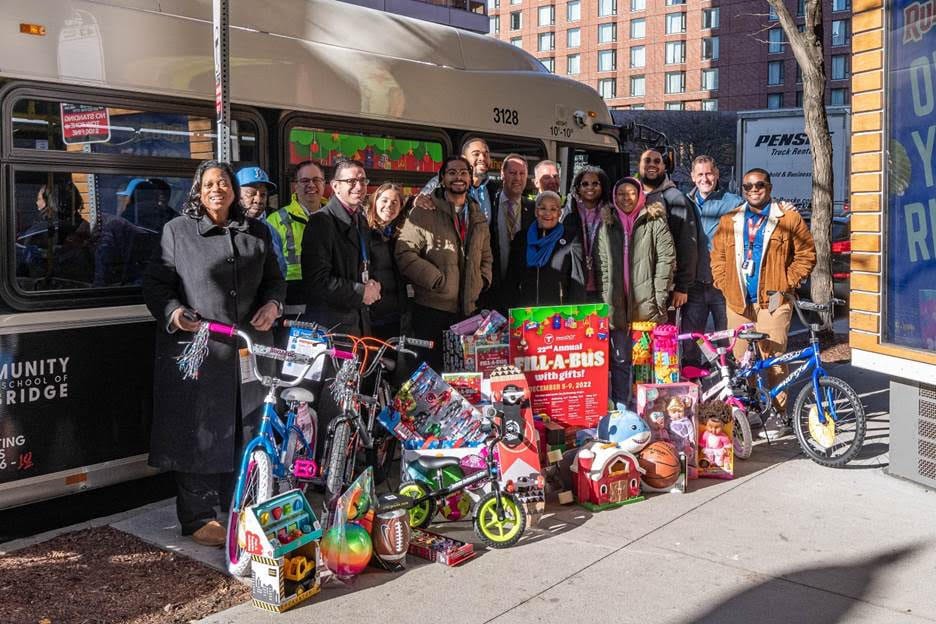 La 22ª edición anual de Fill-A-Bus with Gifts está patrocinada por MBTA y MassDOT con juguetes proporcionados a la Sociedad de Massachusetts para la prevención de la crueldad contra los niños, mediante “Boys and Girls Club de Boston y Heading Home”.