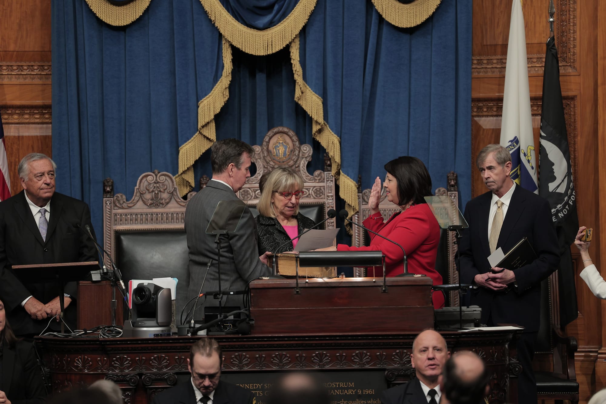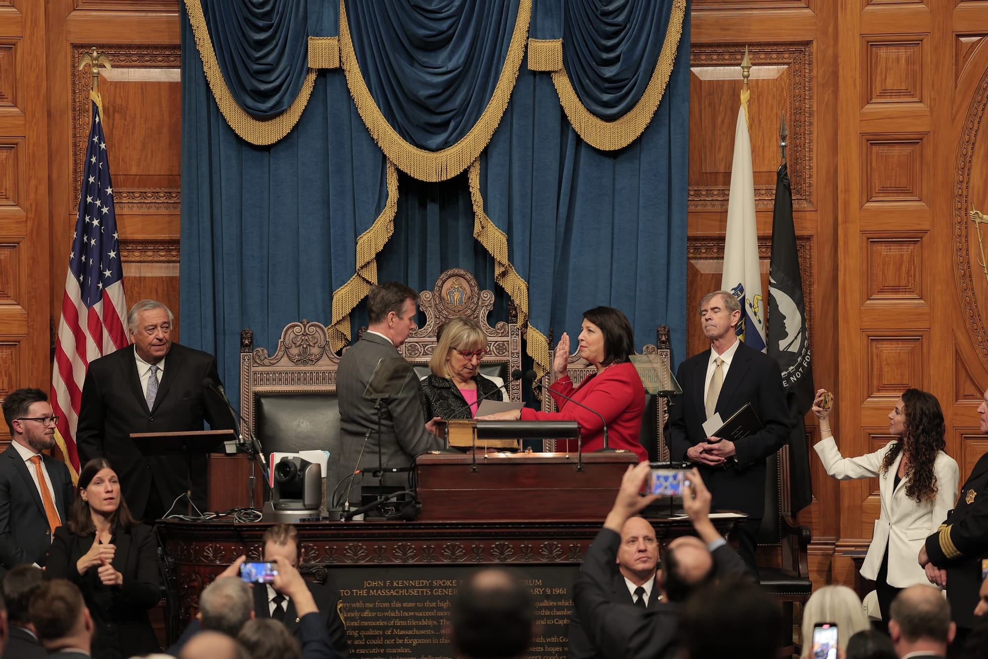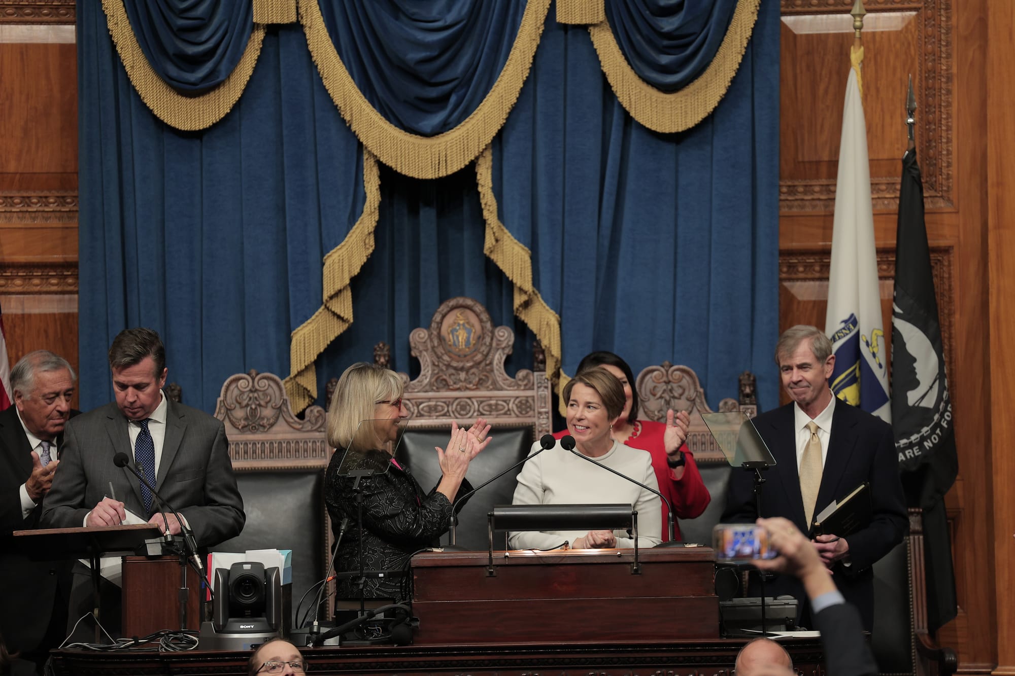 Entre aplausos presentaron a la nueva gobernadora de Massachusetts quien dio un discurso explicando cuáles son sus próximos pasos para el estado. Entre sus principales tareas dijo que se encargará de mejorar principalmente el alto costo de vida en el estado ya que esto ha llevado a que muchos residentes se vayan a otros lugares.