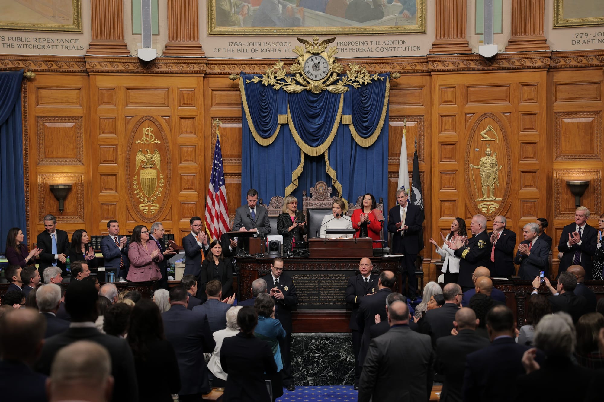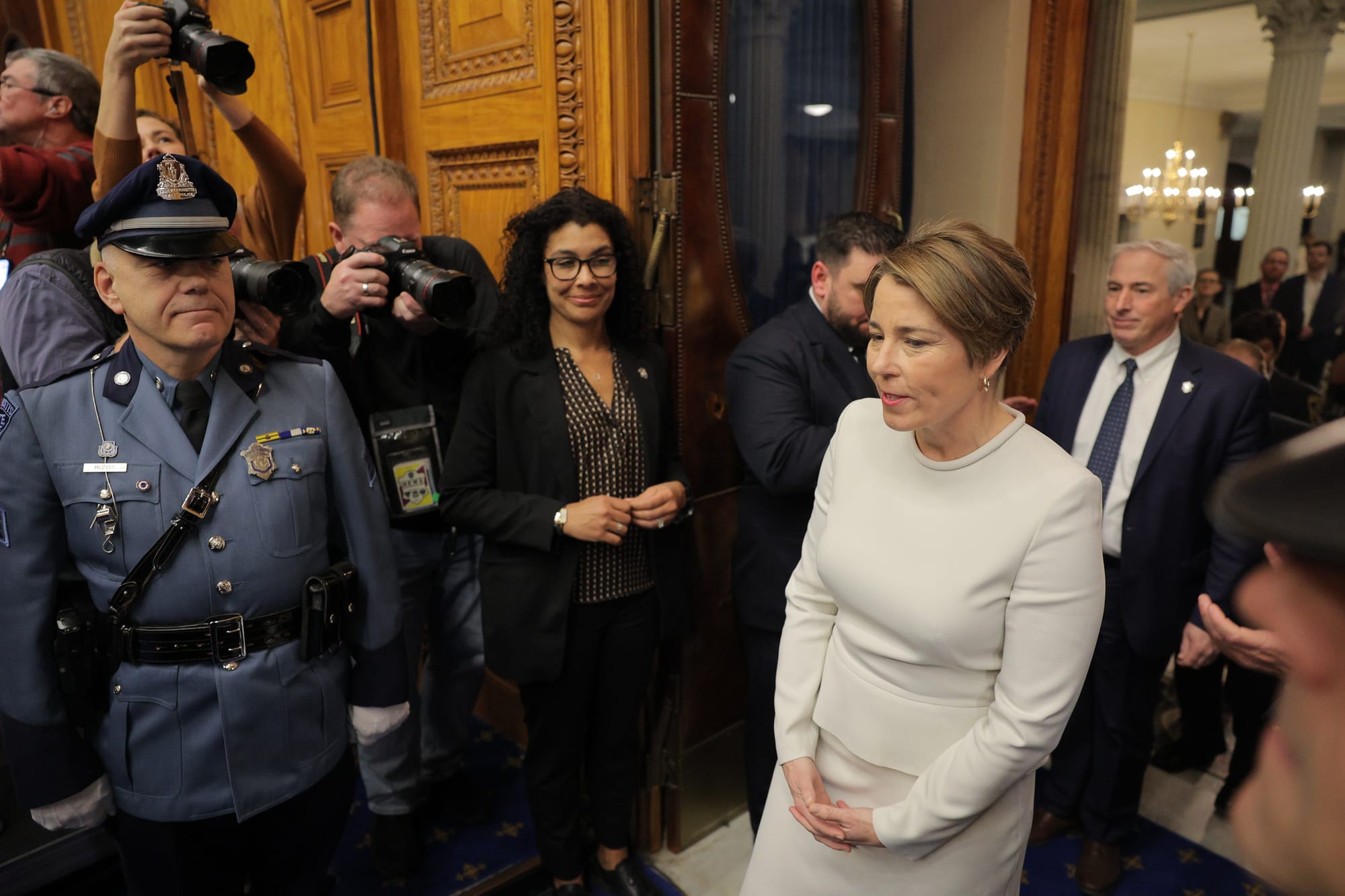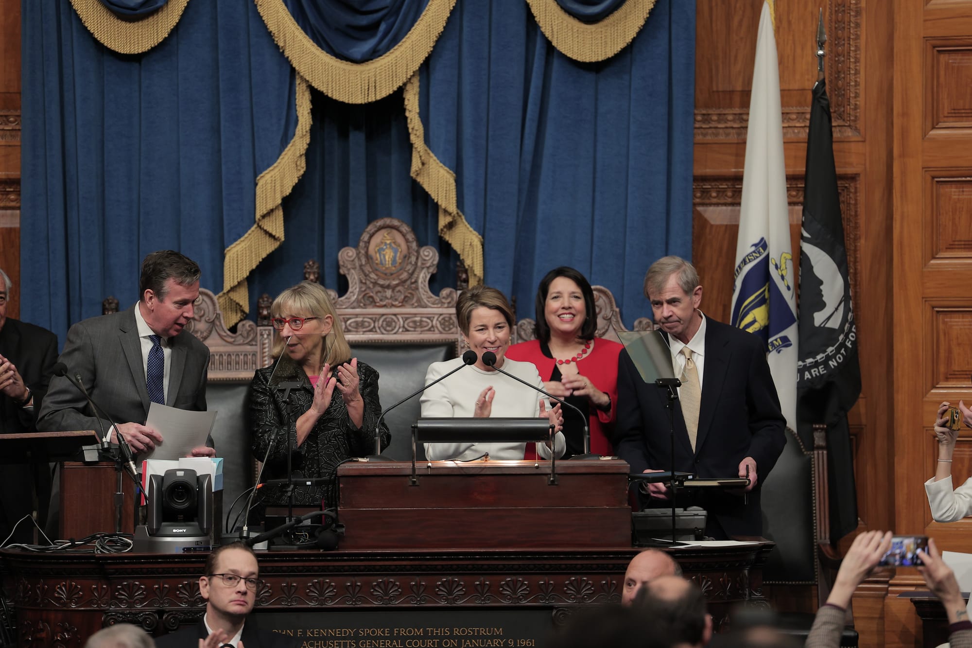 Entre aplausos presentaron a la nueva gobernadora de Massachusetts quien dio un discurso explicando cuáles son sus próximos pasos para el estado. Entre sus principales tareas dijo que se encargará de mejorar principalmente el alto costo de vida en el estado ya que esto ha llevado a que muchos residentes se vayan a otros lugares.