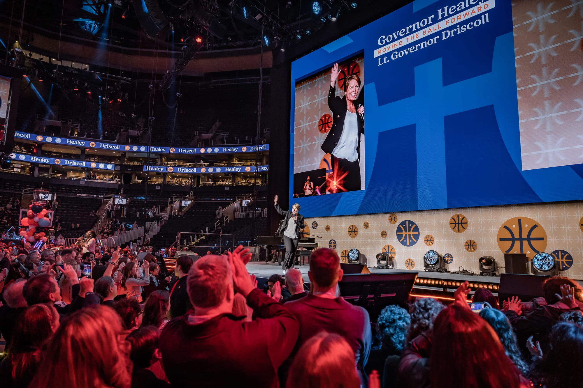 La celebración «Moving the Ball Forward» realizada este jueves en la noche en el TD Garden en el que asistieron miles de personas e incluyó la actuación de la cantante y compositora ganadora del Grammy, Brandi Carlile. El Coro de Hombres Gay de Boston, Oompa, un grupo de canto de la Escuela Secundaria de Salem, la marching band de Everett y muchos otros grupos también estuvieron entre la lista de invitados musicales de la fiesta.