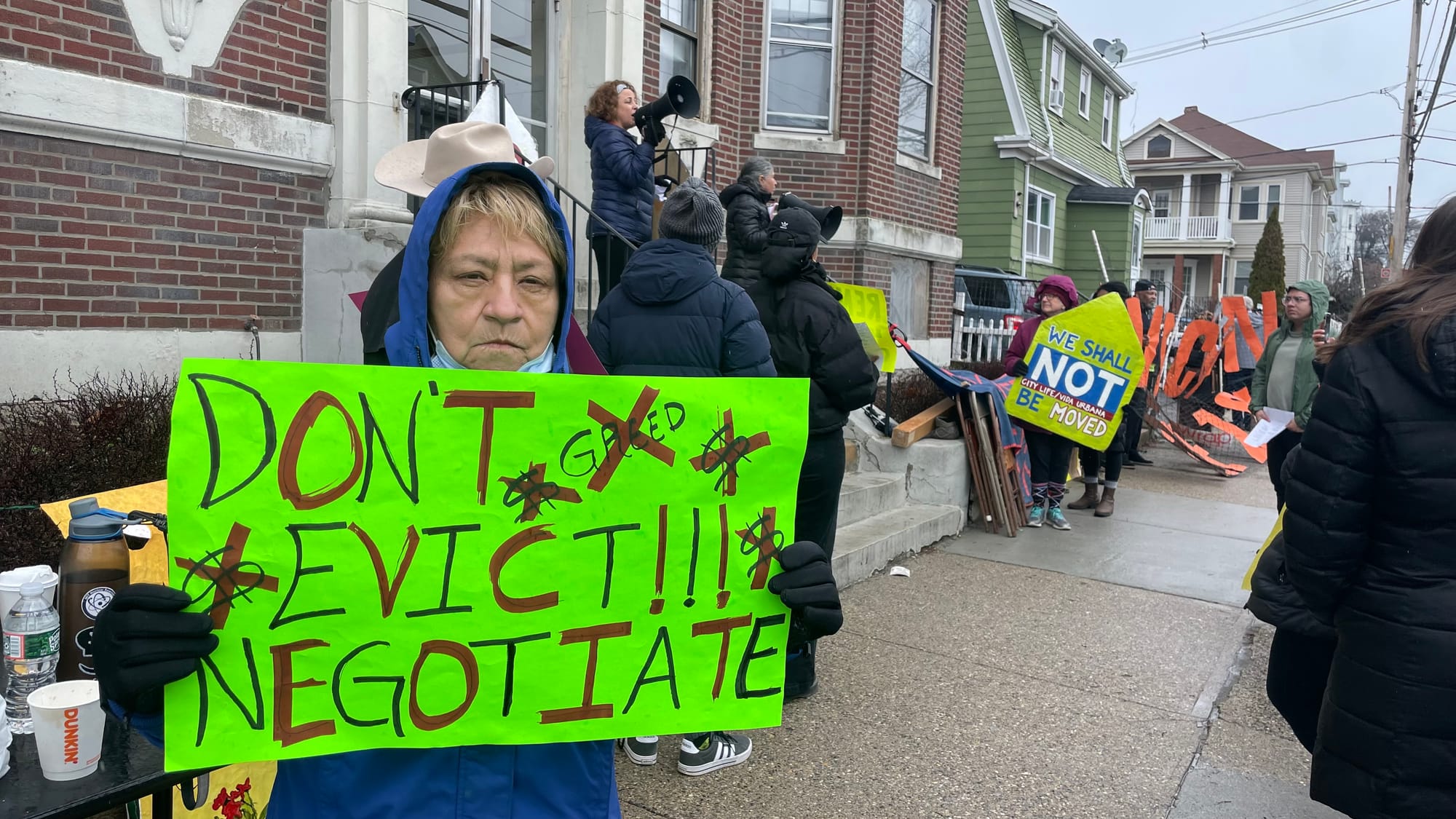 Los integrantes de la Asociación de Inquilinos del 54 Clark Avenue LatinX en Chelsea, antes de dirigirse a su primer juicio de “mediación” por el desalojo impuesto por su arrendador Groma Properties se reunieron frente al edificio donde viven, con pancartas en mano para exigir un acuerdo justo y mejores condiciones en sus viviendas, las cuales están infestadas con plomo, asbesto, goteras y ratas, según denunciaron.