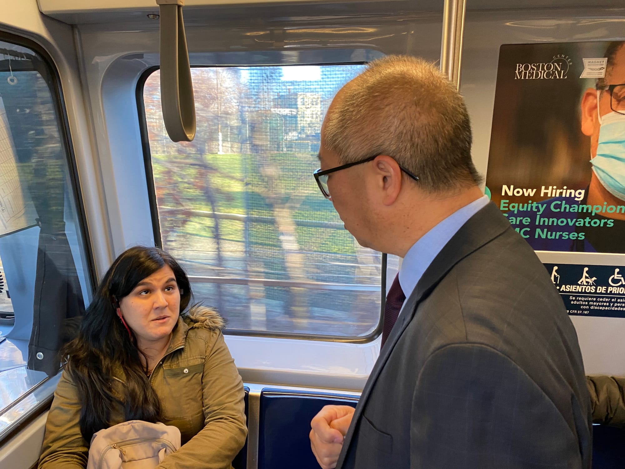 Viajó por la Línea Verde hasta Park Street en su primer día de trabajo el lunes y luego se reunió con los reporteros. Visitará una instalación de mantenimiento de autobuses en Cabot Yard en el sur de Boston por la tarde.