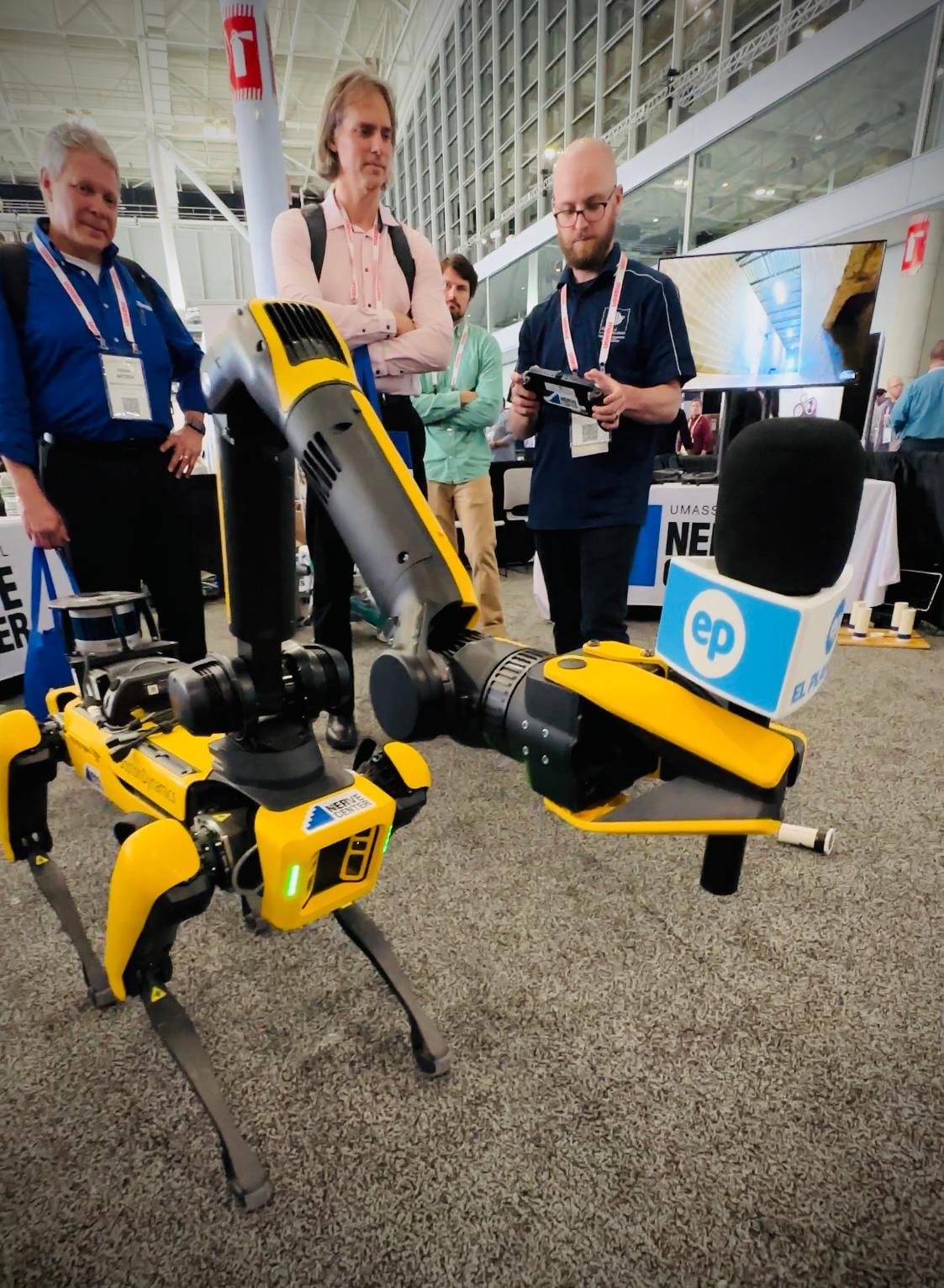 Durante la exhibición vimos varios robots y perros robots con increíble tecnología. Y nos conseguimos a » Spot» de Boston Dynamics quien fue reportero de El Planeta por un día