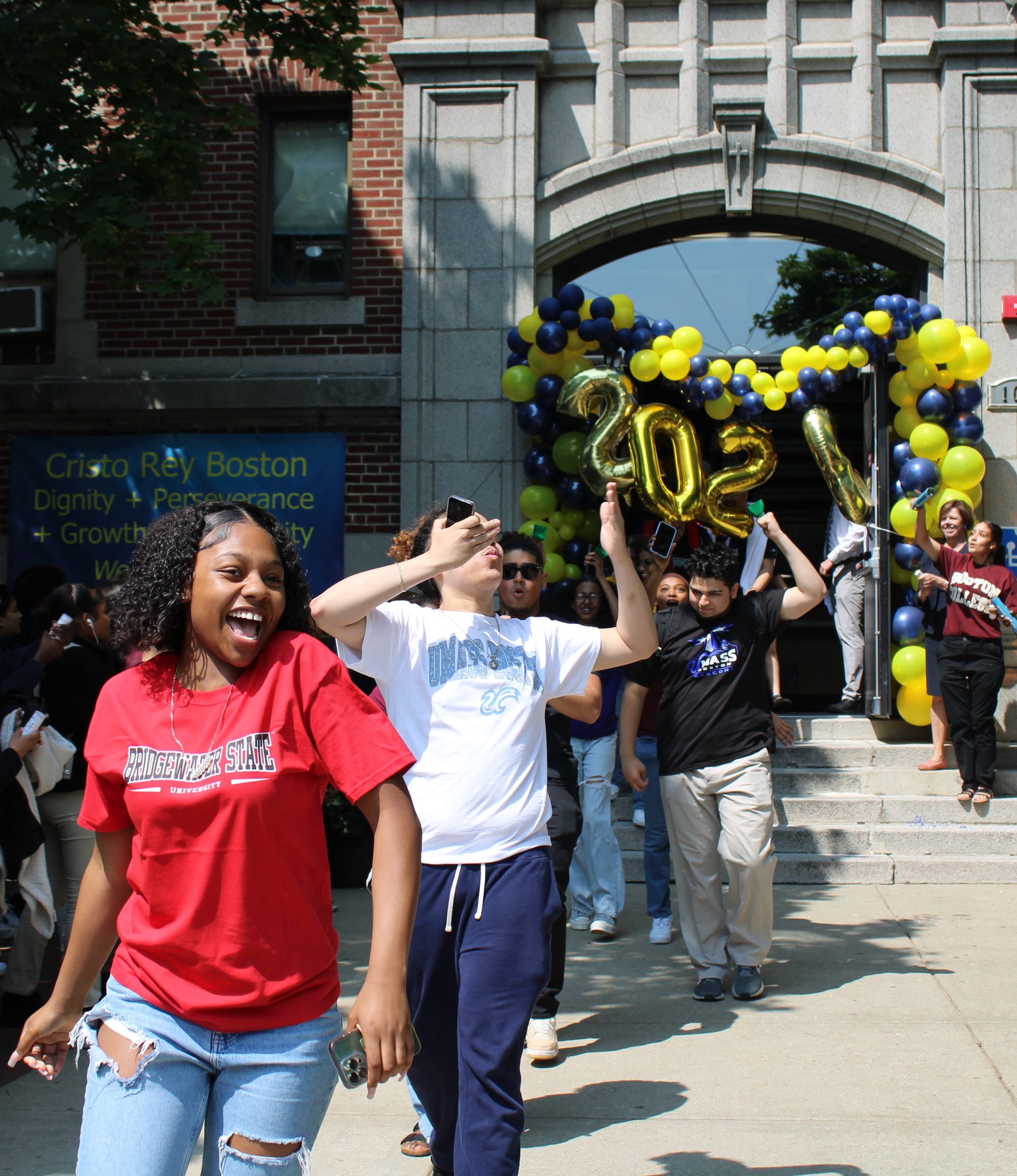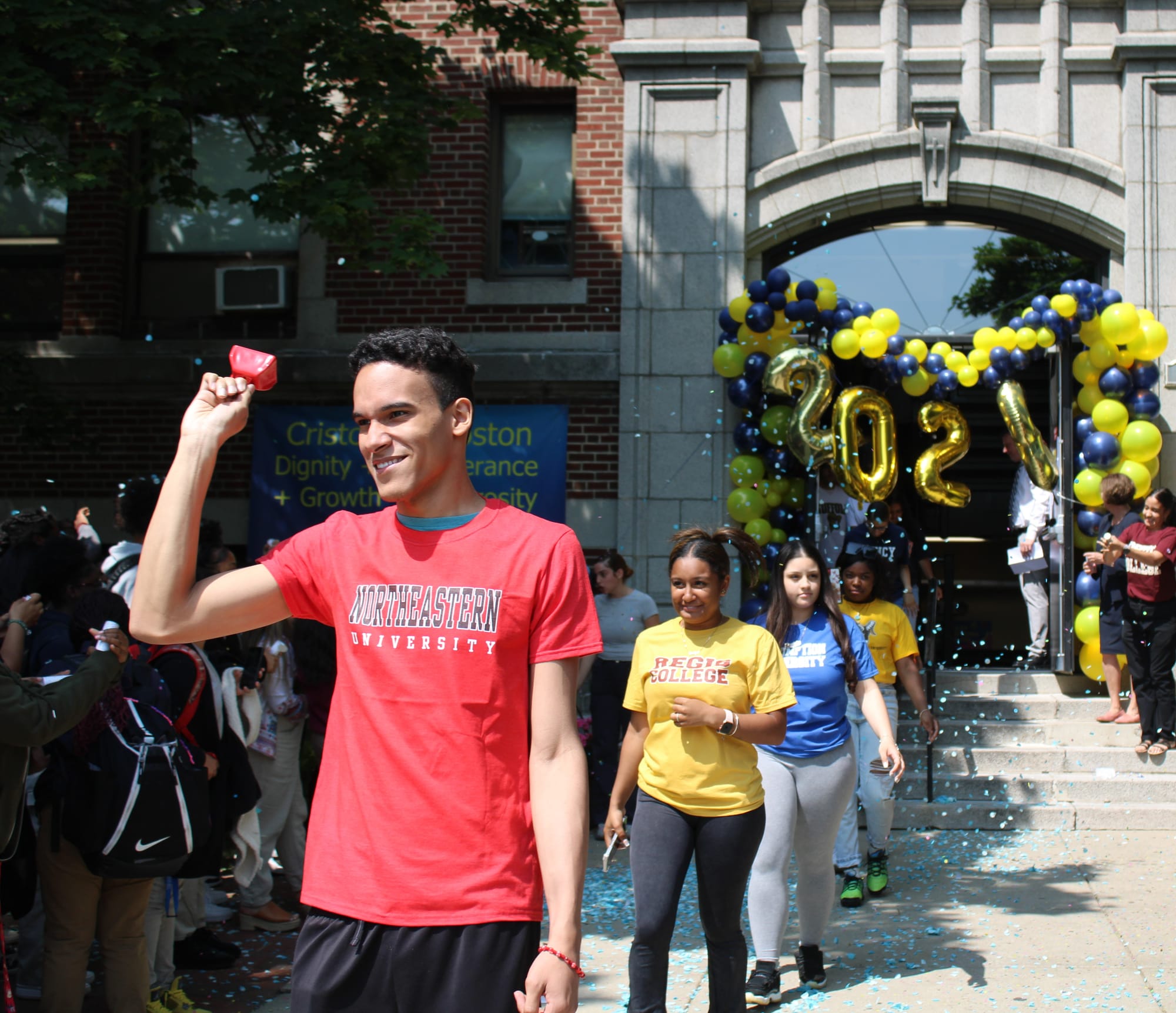 En celebración con la comunidad escolar, el vecindario de Savin Hill y los padres/cuidadores, el Desfile del Senior College destaca las decisiones universitarias de la Clase de 2023 de Cristo Rey y honra su camino hacia la universidad.