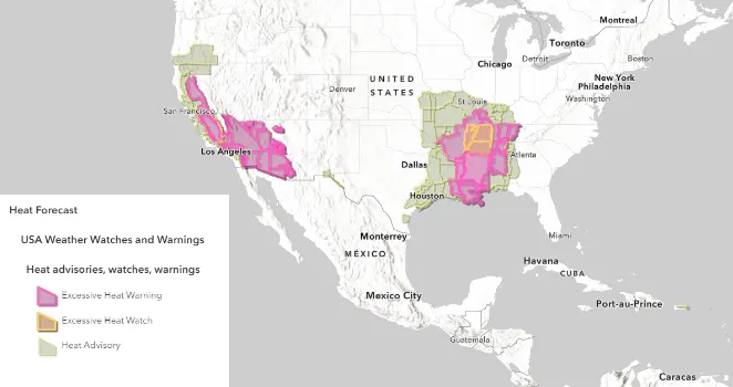 El 28% de la población estadounidense se encuentra, al 30 de junio de 2023, bajo alerta por calor extremo, según el Servicio Nacional de Meteorología. Entre los estados con mayor riesgo de calor están Arizona, California, Nevada, Arkansas, Luisiana y Texas. Puedes consultar información detallada al respecto en este mapa publicado en la web del Sistema Nacional Integrado de Información sobre la Salud del Calor (NIHHIS).