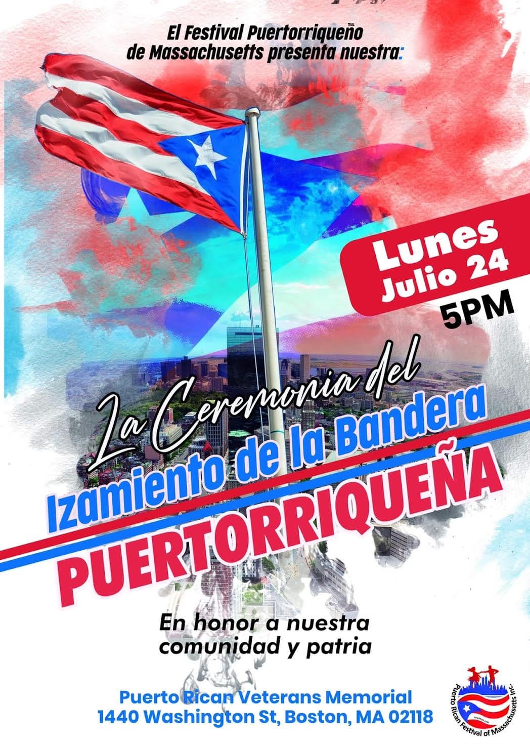 El lunes 24 de julio a partir de las 5 de la tarde, únete para celebrar la cultura y honrar a la comunidad y con el izamiento de la bandera puertorriqueña.