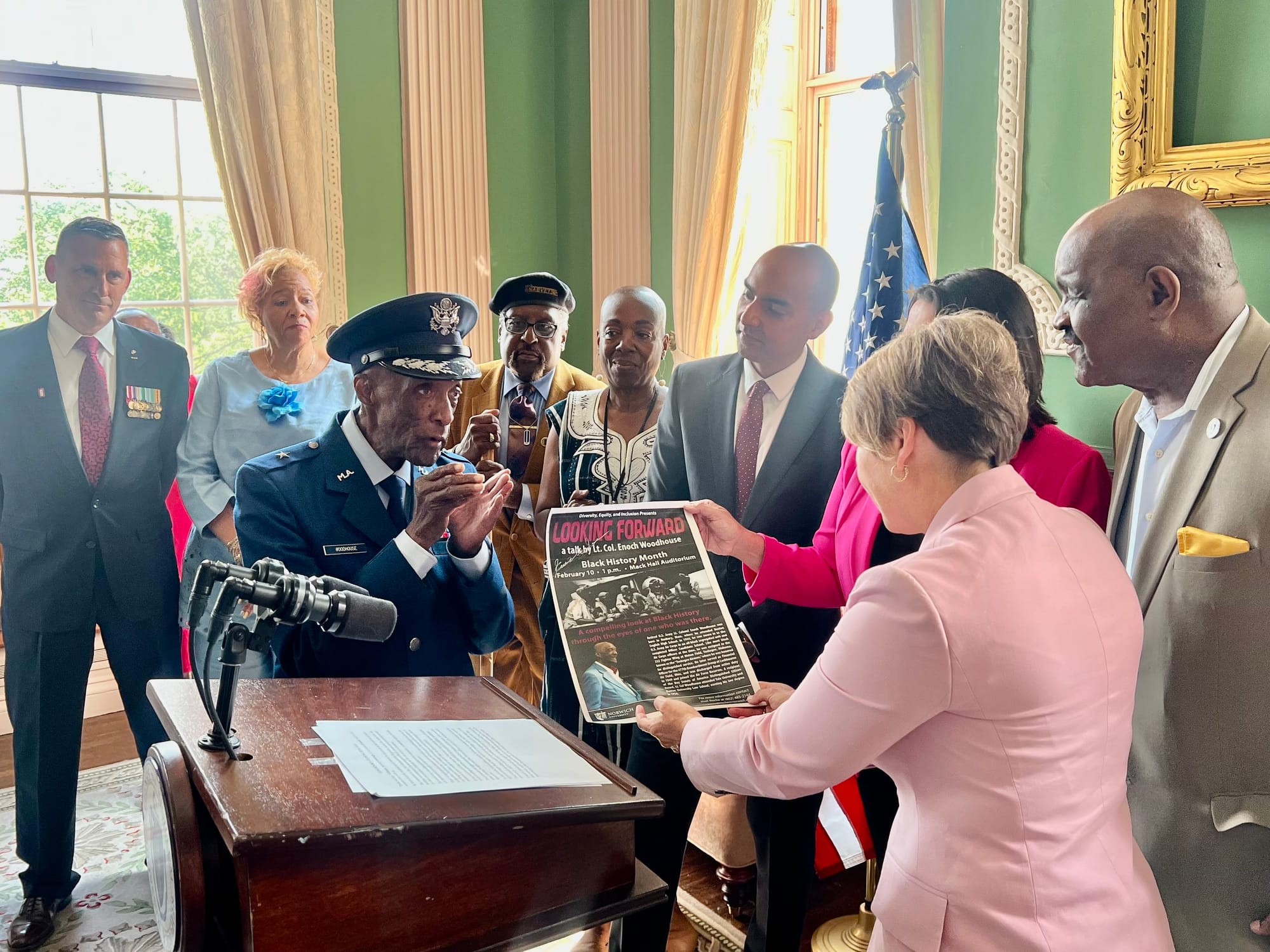 Con este motivo, la gobernadora Maura Healey reunió a miembros de la Guardia Nacional y veteranos de diversas guerras para celebrar este acontecimiento y reiterar el compromiso permanente de luchar contra el racismo y la desigualdad.