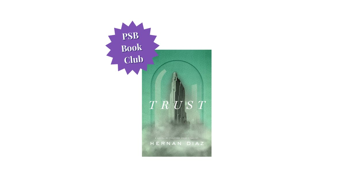 El Club de lectura de PSB, que se reunirá el lunes 31 de julio a las 7 de la noche en Cambridge. El libro de este mes es Trust de Hernan Diaz!