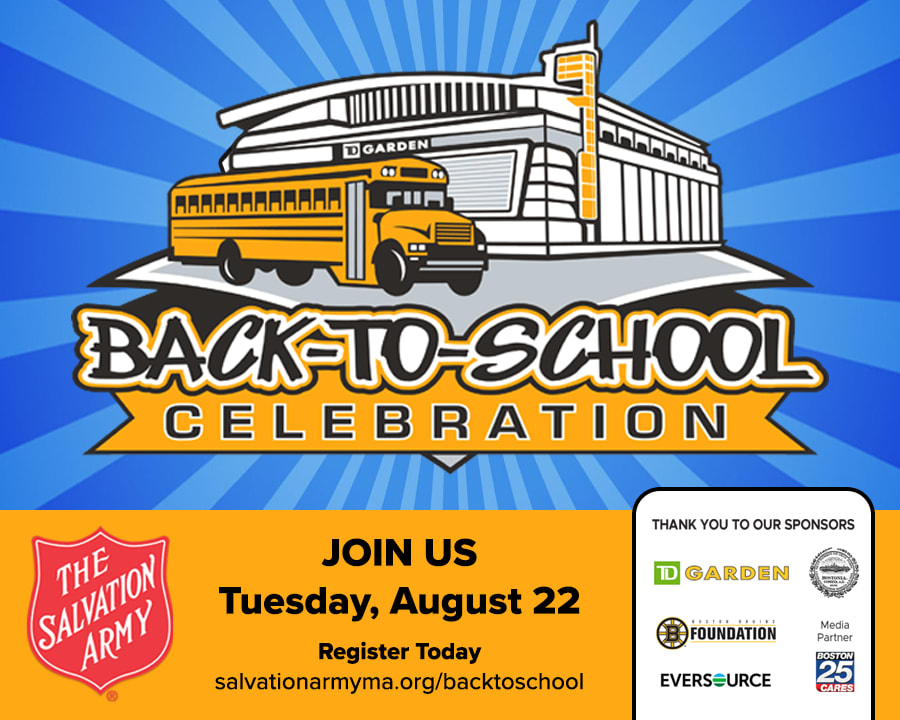 El TD Garden Neighborhood Charities, la división de Massachusetts del Ejército de Salvación y la ciudad de Boston unen sus fuerzas para organizar la tan esperada 12ª celebración anual de la vuelta al cole en Boston.