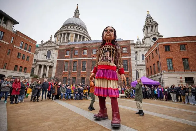 Embarcada en un extraordinario viaje de 6.000 millas a través de Estados Unidos, Little Amal, una imponente marioneta de 12 pies, se erige como símbolo de una niña refugiada siria de 10 años. Su nombre, que en árabe significa “esperanza”, sirve de faro de optimismo para los desplazados de todo el mundo. La historia de Amal resuena especialmente entre los niños separados de sus familias.