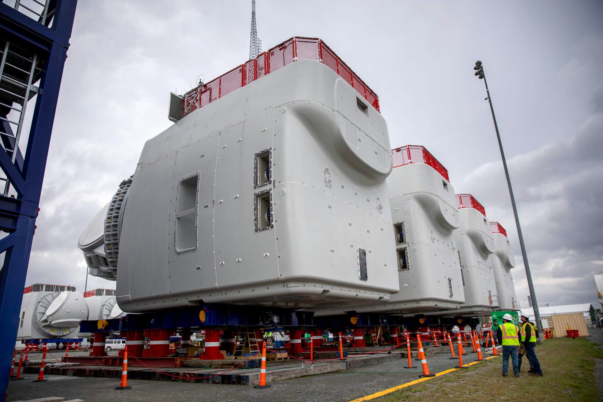 Cada nacelle en el proyecto Vineyard Wind mide alrededor de 40 pies de altura y pesa 750 toneladas.