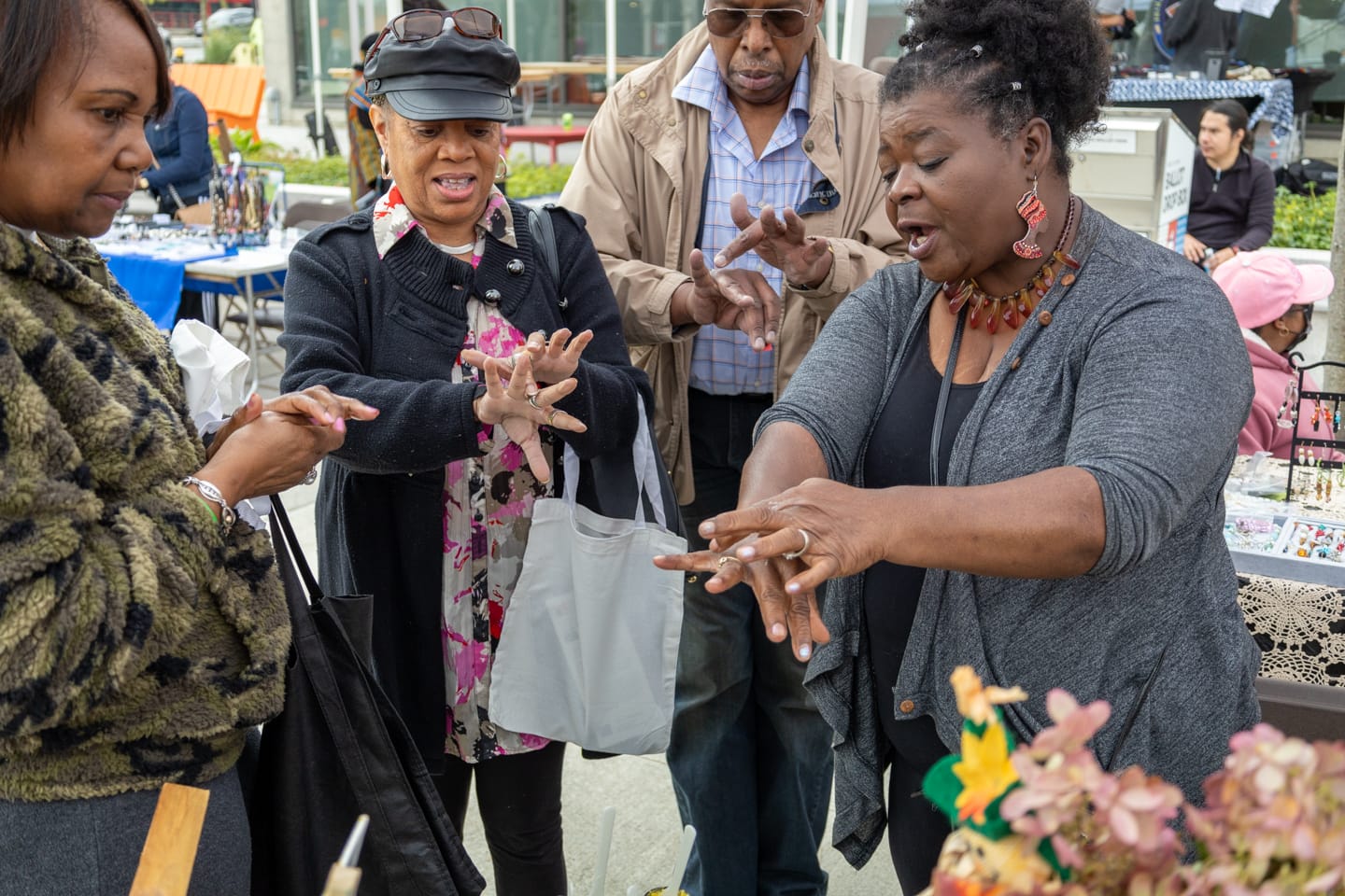 Mientras vendía su manteca de karité casera, aceites perfumados y pinturas acrílicas goteadas en una fresca tarde de sábado en Nubian Square recientemente, Michelle Carter se encontró con una vieja amiga: su antigua maestra de la escuela vocacional, Diane Davis.