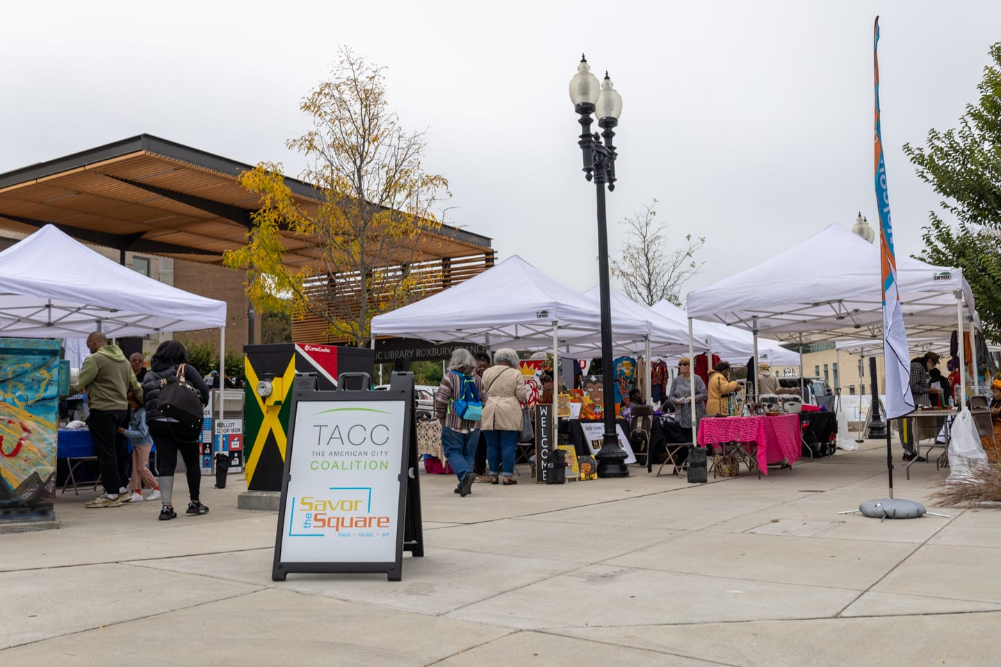Fue organizado por la American City Coalition, El Boston Public Library en Roxbury y Roxbury Main Streets y reunió a pequeños negocios locales, música en vivo, compradores y vendedores locales de alimentos en el área de Roxbury durante horas frente a la biblioteca.