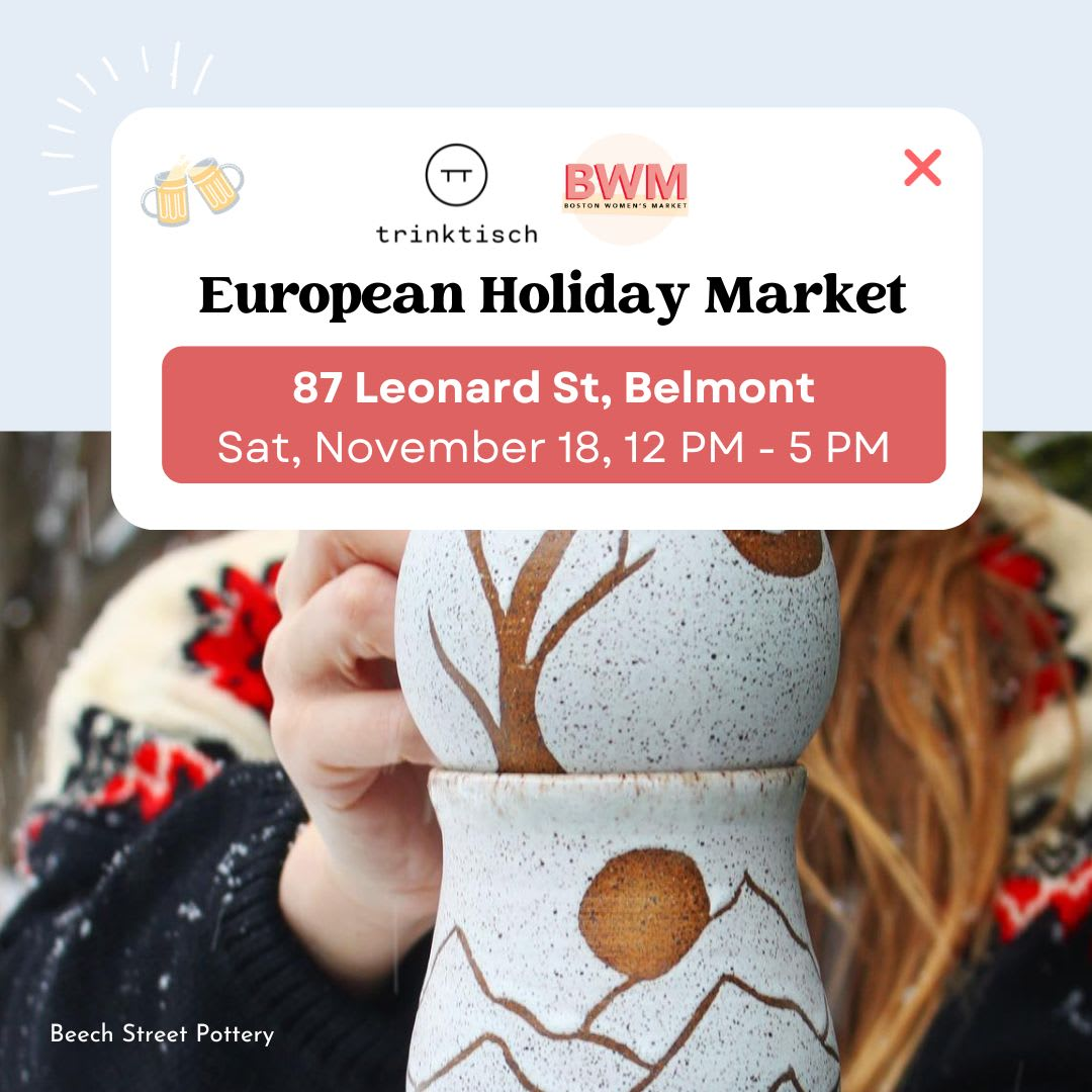 Únase a la familia de creadores y artistas del Boston Women’s Market en Trinktisch Beer Hall, en el corazón de Belmont, para tomar una cerveza y hacer compras navideñas con creadores y artistas locales el sábado 18 de noviembre.