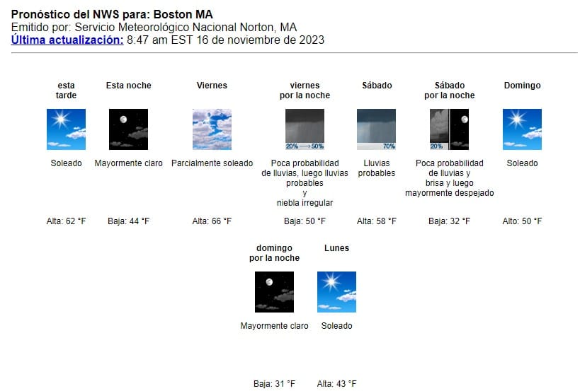 Algunas zonas podrían experimentar condiciones ligeramente más cálidas, y nubosidad hacia las zonas de Rhode Island y el sureste de Massachusetts.
