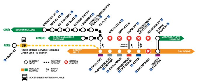Pueden encontrar más información sobre los cambios de servicio a través de los carteles en las estaciones, los anuncios públicos en las estaciones y en mbta.com/alerts.