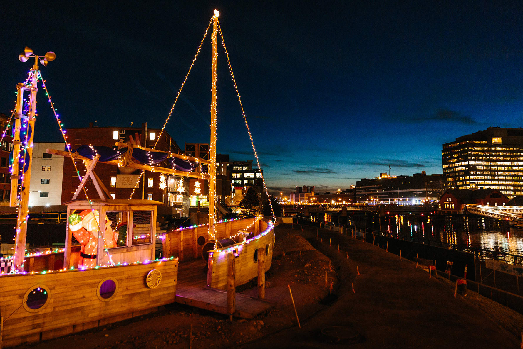 Iluminación anual navideña para barcos en Martin’s Park en Seaport