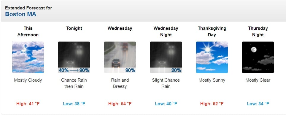 A pesar del tiempo despejado y soleado actual, un sistema meteorológico de altas presiones que se origina en Quebec está introduciendo un frente inusualmente frío hacia New England lo que podría provocar un comienzo escalofriante de la semana festiva.
