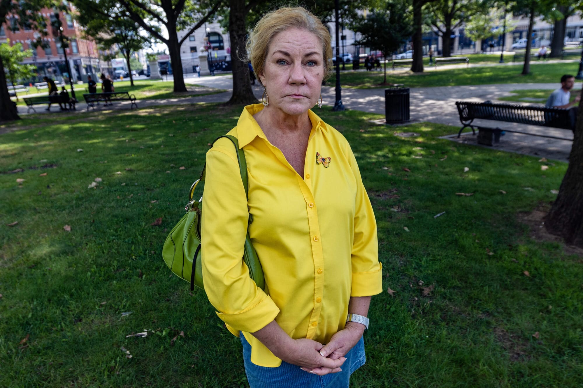 Esta mujer de 57 años fue desalojada de su apartamento en Worcester el mes pasado y no ha podido encontrar otro lugar que pueda costear. Tomó dinero prestado para alojarse unos días en un Airbnb y luego en una habitación de motel barata. Ahora se encuentra en un pequeño refugio para personas sin hogar en Worcester.